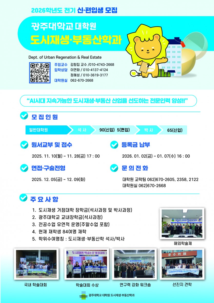 !2026학년도 전기 광주대학교 대학원 도시재생·부동산학과 신편입생 모집!