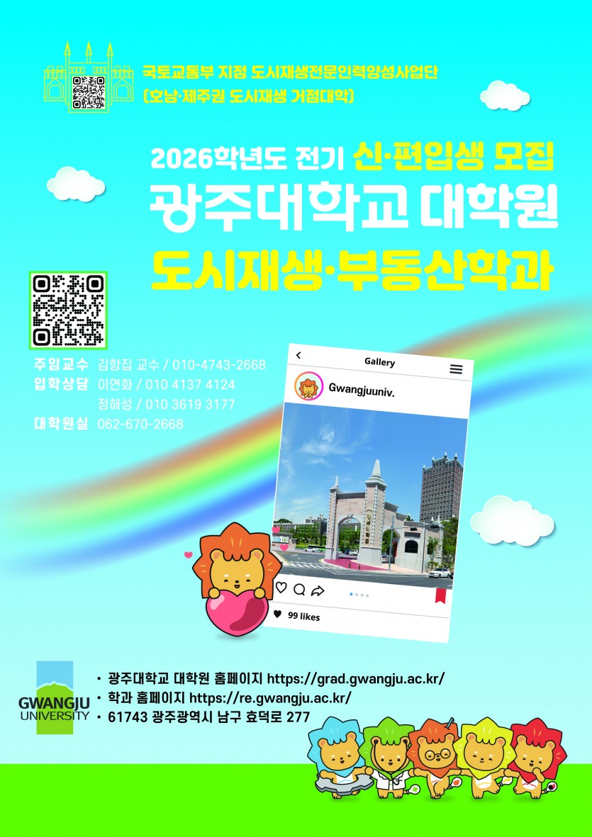 !2026학년도 전기 광주대학교 대학원 도시재생·부동산학과 신편입생 모집!